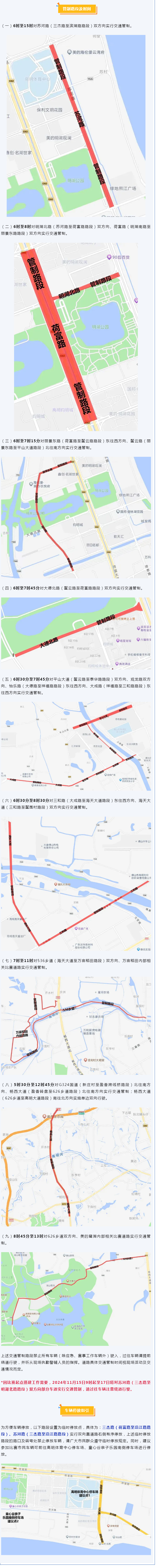 2024年11月17日,高明区将举行2024佛山高明稻田马拉松,为确保赛事安全、顺利进行,根据《中华人民共和国道路交通安全法》有关规定,交警大队将于2024年11月17日5时30分起对部分道路实行交通管制,具体如下: