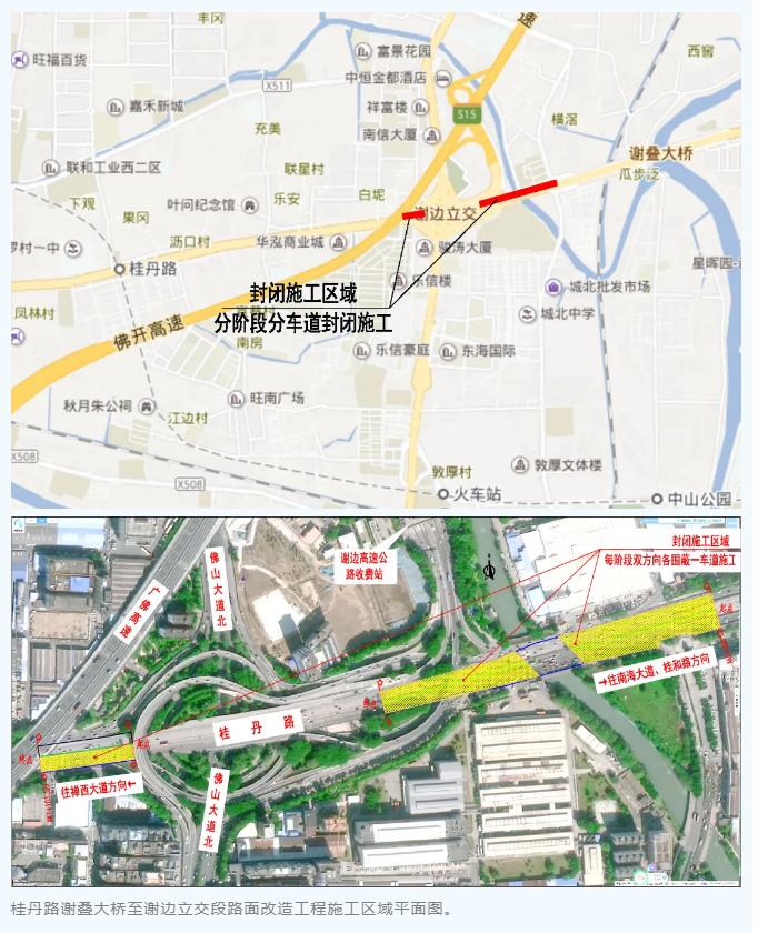 南海区桂丹路谢叠大桥至谢边立交段路面改造工程施工交通管制提示