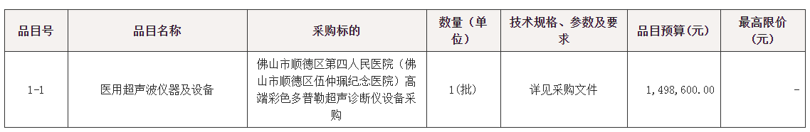 项目名称:佛山市顺德区第四人民医院(佛山市顺德区伍仲珮纪念医院)高端彩色多普勒超声诊断仪设备采购