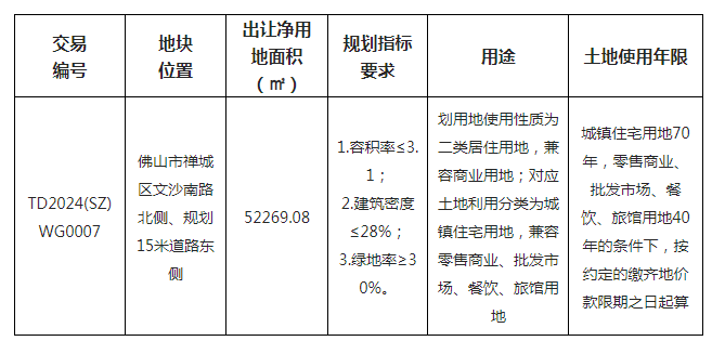 五、有意参与竞买者可于2024年11月15日后登录网上交易系统下载TD2024(SZ)WG0007地块的《佛山市国有建设用地使用权网上挂牌出让文件》。