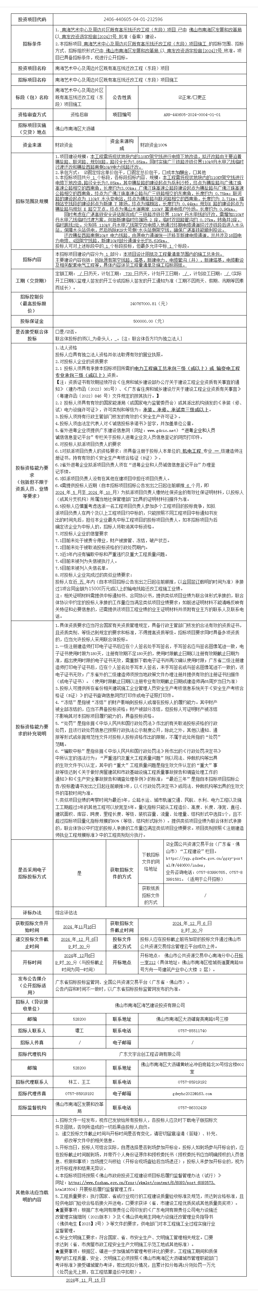 南海艺术中心及周边片区既有高压线迁改工程(东段)项目 已由 佛山市南海区发展和改革局 以 南发改资沥字投审[2024]7号 批准(备案)建设...[阅读全文]