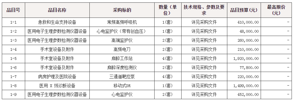 采购包1(常频高频呼吸机等设备):