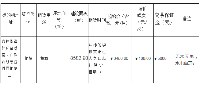 顺德容桂街道外环路以南、广珠西线高速以西地块二网上租赁竞投公告