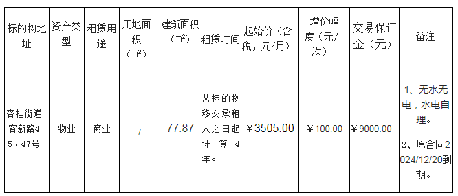 佛山市顺德区容桂街道红旗社区居委会红旗中路77号之一租赁权竞投
