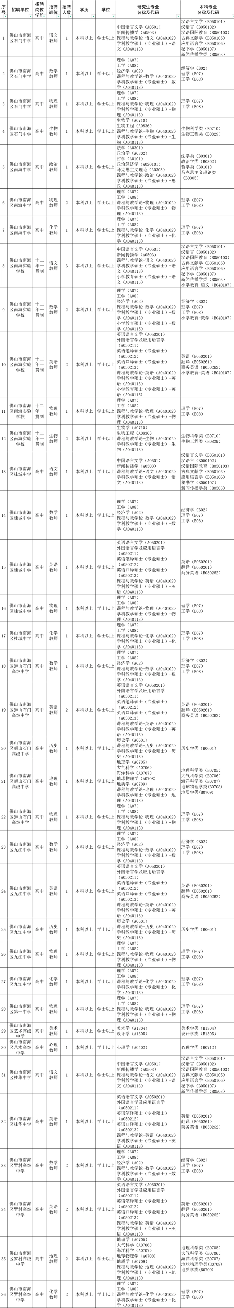 (六)因工作需要等原因需临时调整招聘时间和地点的,届时将另行补充公告。请有意者及时留意佛山市南海区教育局官方平台和“南海教育”微信公众号发布的公告。
