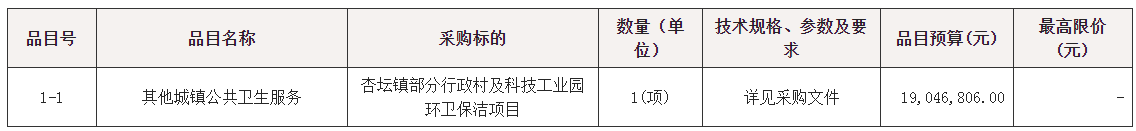 项目名称:杏坛镇部分行政村及科技工业园环卫保洁项目
