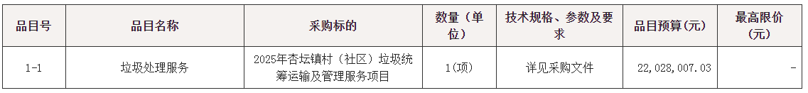 采购包1(2025年杏坛镇村(社区)垃圾统筹运输及管理服务项目的采购项目):