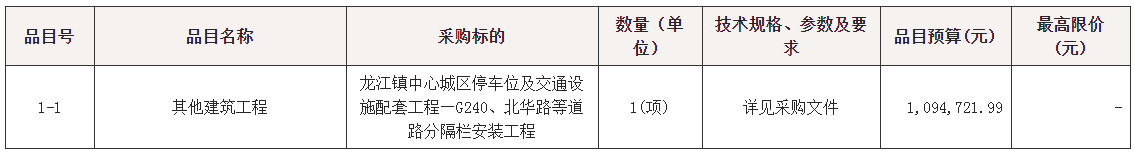 采购包1(龙江镇中心城区停车位及交通设施配套工程—G240、北华路等道路分隔栏安装工程):