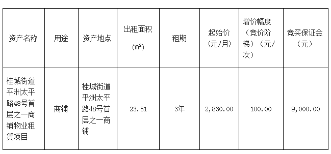 南海桂城街道平洲永安中路3号首层商铺之一物业租赁项目