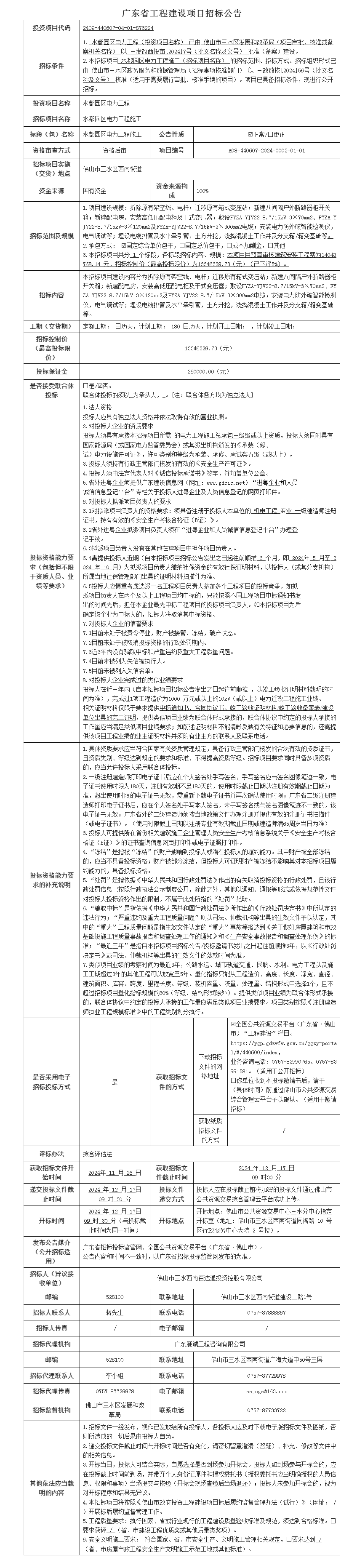 概述:水都园区电力工程(投资项目名称) 已由 佛山市三水区发展和改革局(项目审批、核准或备案机关名称) 以 三发改西投审[2024]7号(批文名称及文号) 批准(备案)建设......