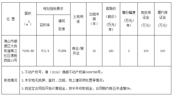 八、自本次公告起至网上挂牌截止期间,如有关于本地块网上挂牌出租文件的修改、澄清、说明等将通过上述网上交易系统、佛山市顺德区公共资源交易中心网站发布,不再另行通知,请有意参与竞租者密切留意。其它未尽事宜,详见本地块的网上挂牌出租文件。