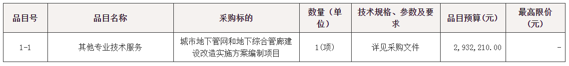 采购包1(城市地下管网和地下综合管廊建设改造实施方案编制项目):