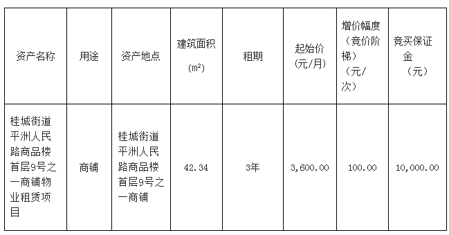 南海桂城街道平洲永安中路3号首层商铺之一物业租赁项目