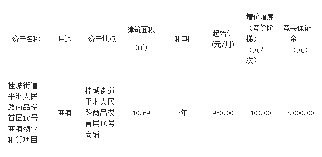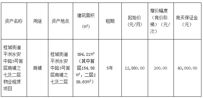 南海桂城街道平洲永安中路3号首层商铺之一物业租赁项目