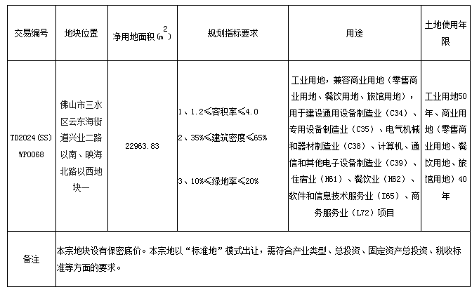 五、有意参与竞买者可于2024年11月28日后登录网上交易系统下载TD2024(SS)WP0068地块的《佛山市三水区国有建设用地使用权网上拍卖出让文件》。