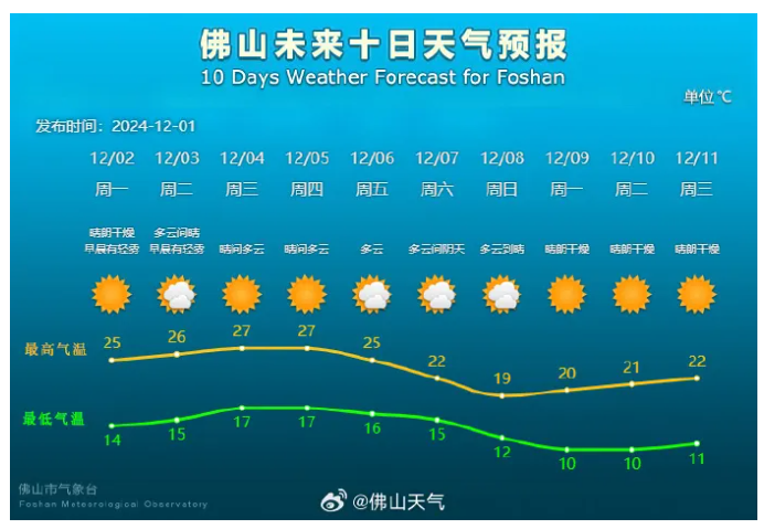 据广东省气象部门预计,12月主要有5次冷空气影响广东,大致出现在12月4-6日(中等)、12月9-11日(弱)、12月15-17日(中等)、12月19-21日(中等)、12月26-28日(强)。预计12月下旬后期广东中北部可能出现寒潮。