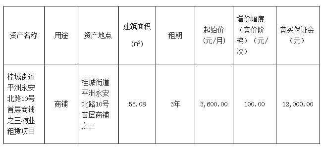 桂城街道平洲永安北路10号首层商铺之三物业租赁项目招标公告
