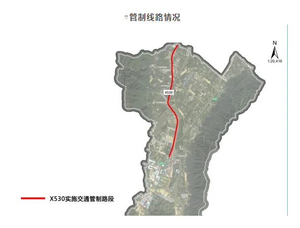 南山镇辖区内县道X530线道路实施交通限制措施,禁止中、重型大货车通行。