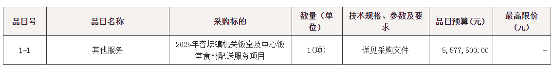 项目名称:2025年杏坛镇机关饭堂及中心饭堂食材配送服务项目