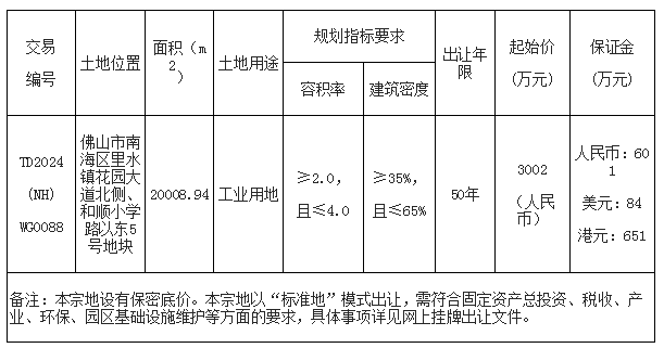 佛山市南海区国有建设用地使用权网上挂牌出让公告