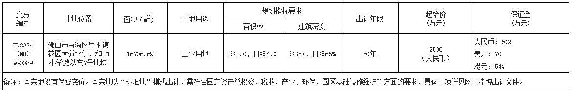 八、自本次公告起至网上挂牌截止期间,如有关于本宗地竞买文件的修改、澄清、说明等将通过网上交易系统以及佛山市南海区人民政府网发布,请有意参与竞买者密切留意。其它未尽事宜,详见本宗地的网上挂牌出让文件。