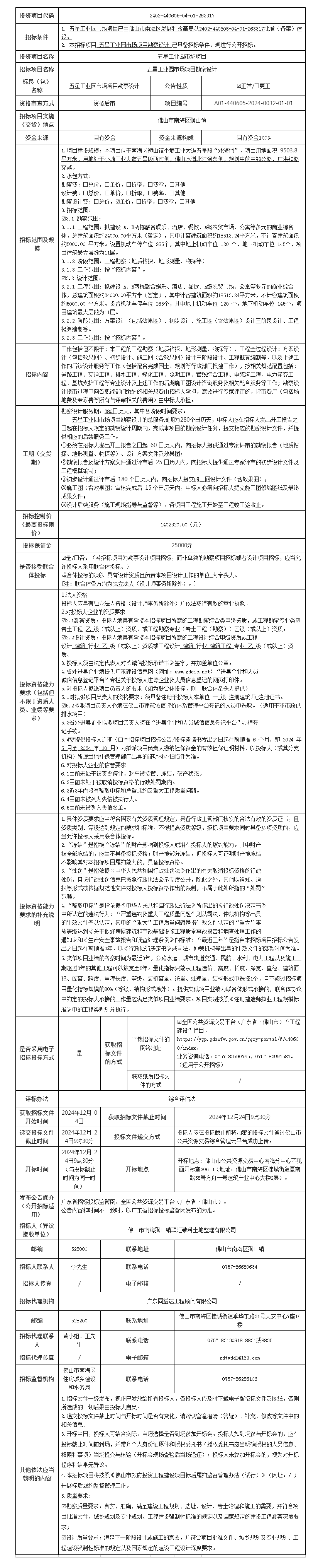 南海区狮山镇五星工业园市场项目勘察设计招标公告