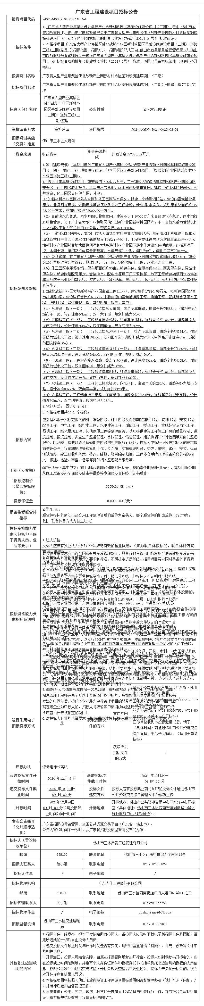 广东省大型产业集聚区佛北战新产业园新材料园区基础设施建设项目(二期)-道路工程(二期)监理招标公告