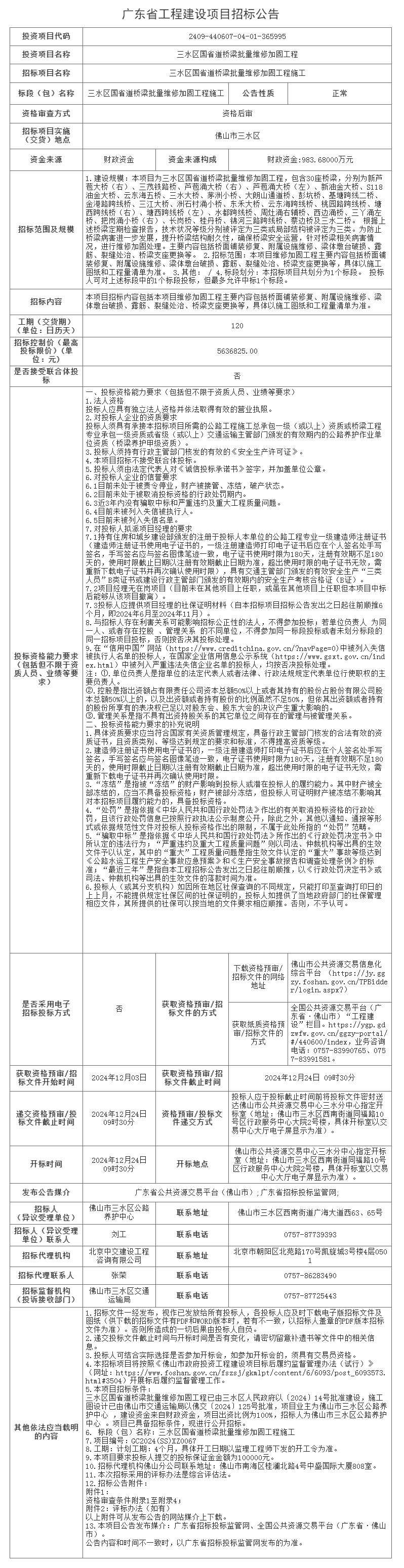 三水区国省道桥梁批量维修加固工程施工招标公告