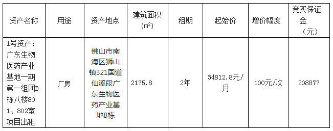 1.招/出租人: 佛山市南海生物医药产业投资发展有限公司