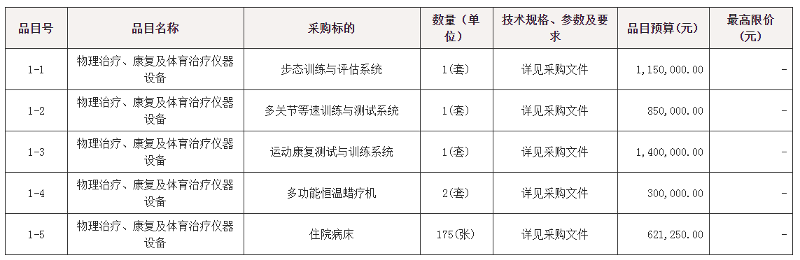 项目名称:国产医疗设备采购项目(康复医院一期第五批医疗设备)