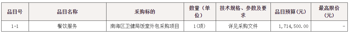 南海区卫健局饭堂外包采购项目招标项目的潜在投标人应在广东省政府采购网https://gdgpo.czt.gd.gov.cn/获取招标文件,并于 2024年12月30日 09时00分 (北京时间)前递交投标文件。