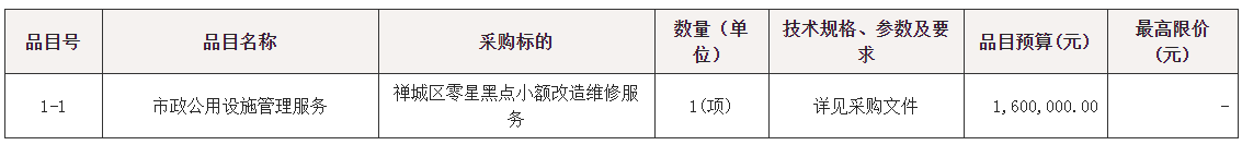 项目名称:禅城区零星黑点小额改造维修服务(二次)