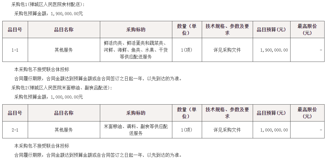 采购包1(禅城区人民医院食材配送):