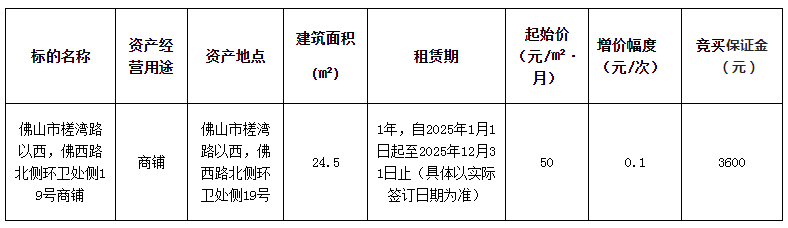 1.招租人:佛山市南海区大沥资产经营管理有限公司