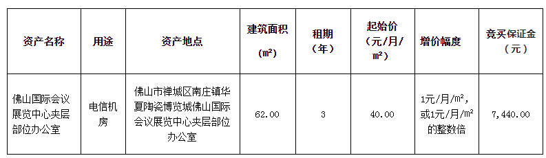 佛山国际会议展览中心夹层部位办公室租赁公告