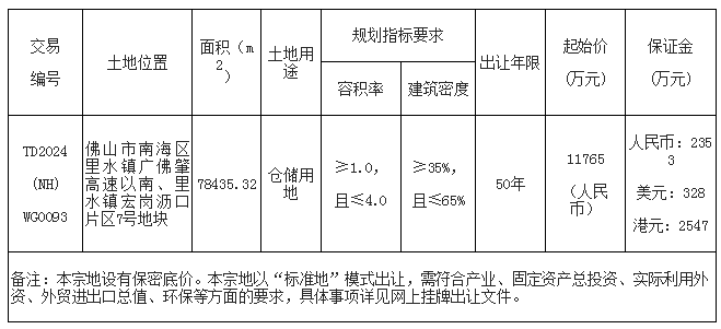 佛山市南海区国有建设用地使用权网上挂牌出让公告