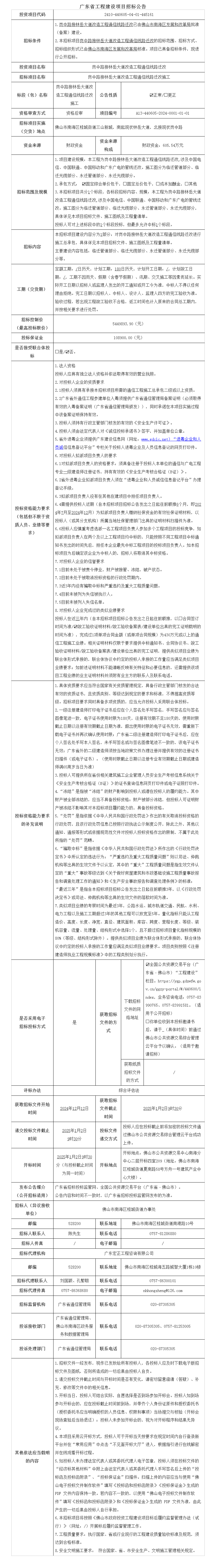 概述:新逢沙大道二期工程(中段)已由佛山市顺德区发展和改革局以顺发改资〔2024〕25号 批准(备案)建设,招标人为佛山市顺德区工程建设中心......