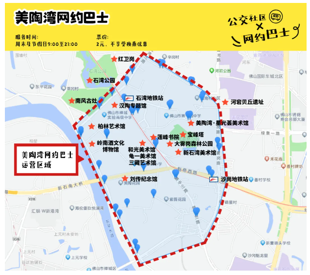 4.预约方式:市民可通过佛山公交微信公众号、电话(83833333按1转1选择禅城区)实时预订上下车站点,即可召唤公交车辆在指定的运营区域内实现任一站点到另一站点的出行。