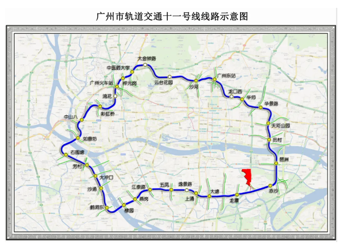 11号线全长44.2公里,共设31座车站,换乘站达26座,其中16座与既有线路换乘,是名副其实的“换乘之王”,串联天河区、白云区、越秀区、荔湾区和海珠区5个区,具有重要的交通战略定位和文化价值。
