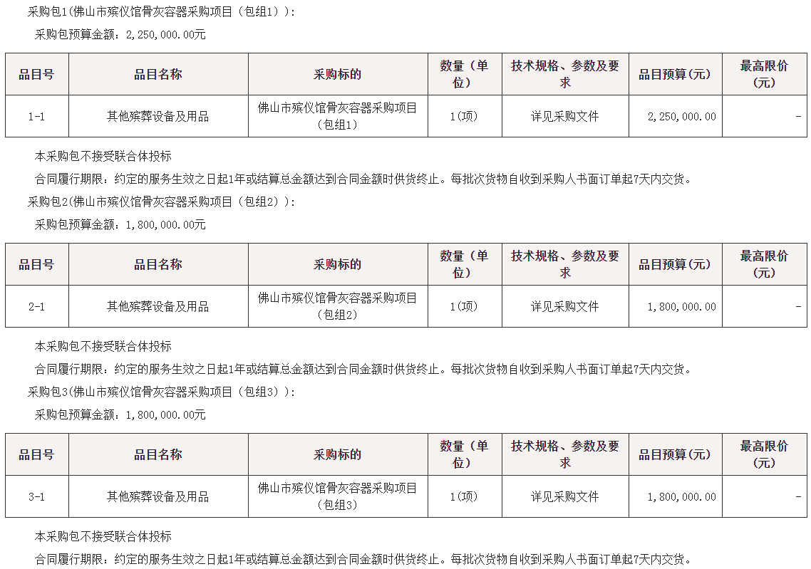 项目名称:佛山市殡仪馆2025年度骨灰容器采购项目