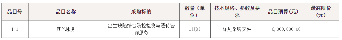 采购包1(出生缺陷综合防控检测与遗传咨询服务):