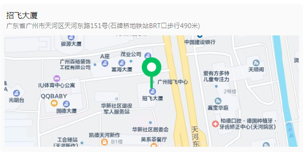 广州招飞大厦(广东省广州市天河区天河东路151号)一楼报到大厅。