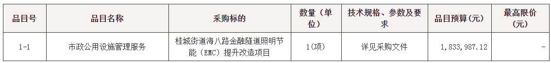 采购包1(桂城街道海八路金融隧道照明节能(EMC)提升改造项目):