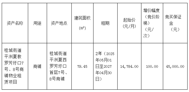 南海桂城街道平洲夏教罗芳圩口7号、8号商铺物业租赁项目