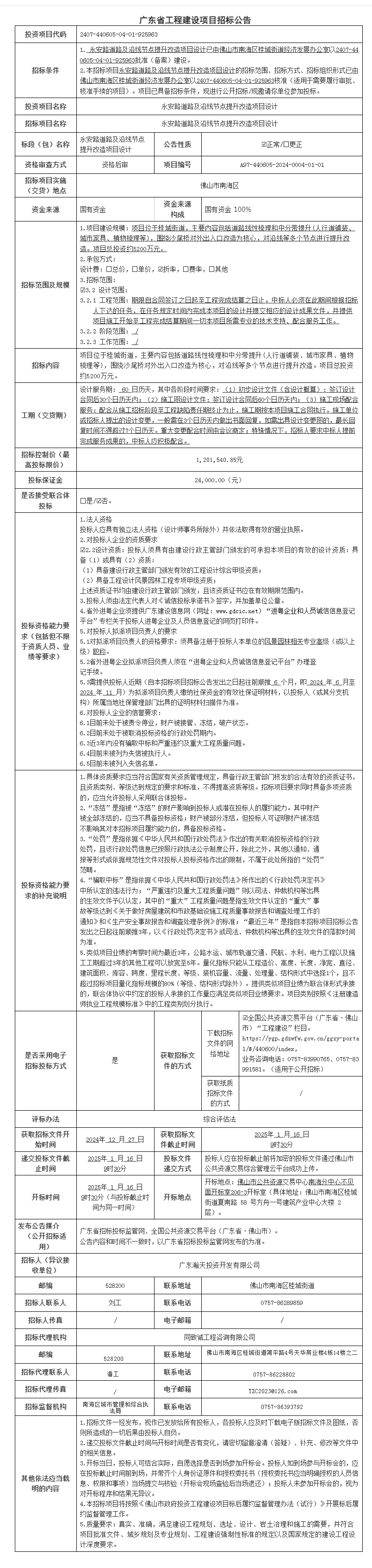 佛山市南海区永安路道路及沿线节点提升改造项目设计招标公告