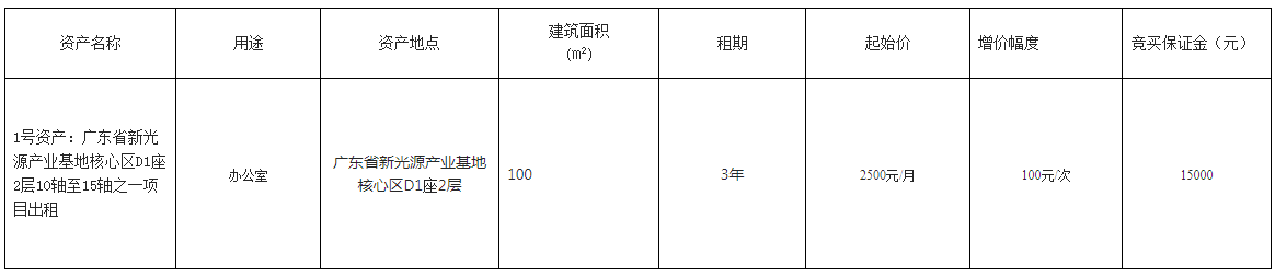 广东省新光源产业基地核心区D1座2层10轴至15轴之一物业项目出租