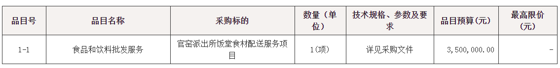 采购包1(官窑派出所饭堂食材配送服务项目):