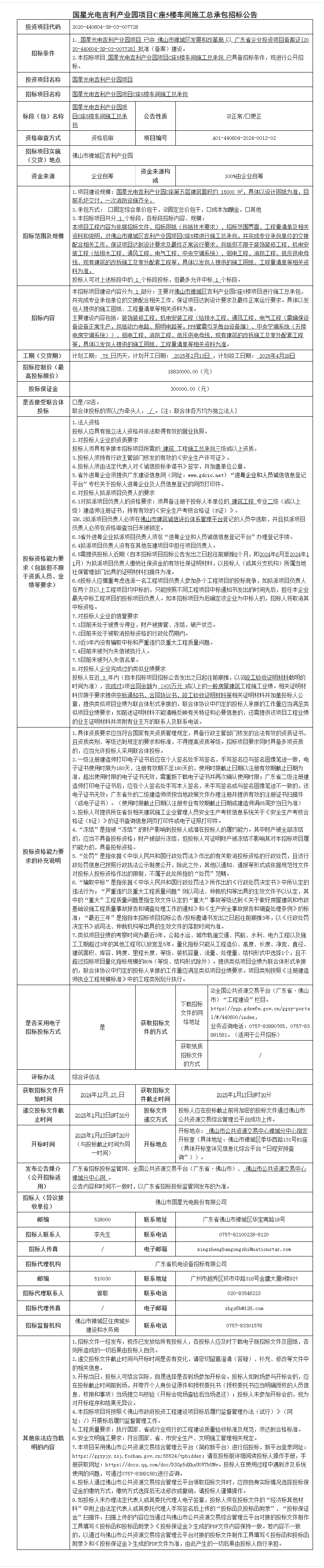 国星光电吉利产业园项目C座5楼车间施工总承包招标公告