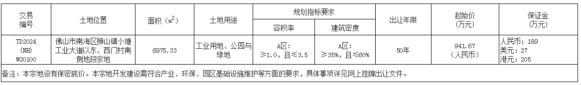 八、自本次公告起至网上挂牌截止期间,如有关于本宗地竞买文件的修改、澄清、说明等将通过网上交易系统以及佛山市南海区人民政府网发布,请有意参与竞买者密切留意。其它未尽事宜,详见本宗地的网上挂牌出让文件。