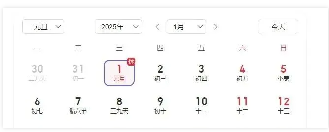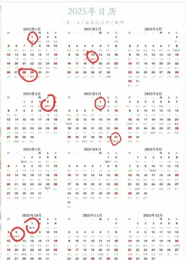 2025年元旦、春节、清明节、劳动节、端午节、中秋节和国庆节放假调休日期的具体安排通知如下: